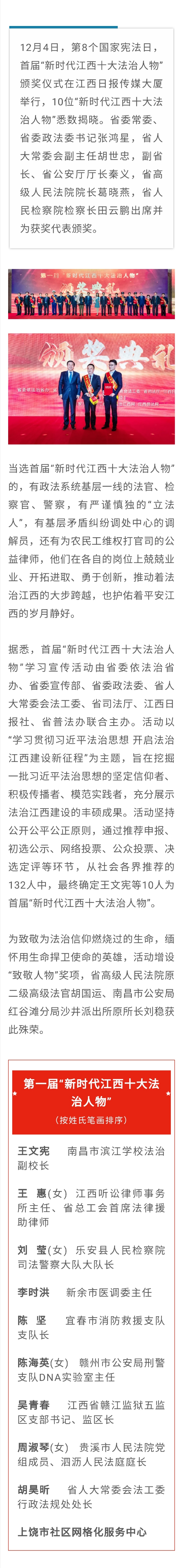 【学习贯彻习近平法治思想】首届“新时代江西十大法治人物”揭晓,张鸿星为获奖代表颁奖
