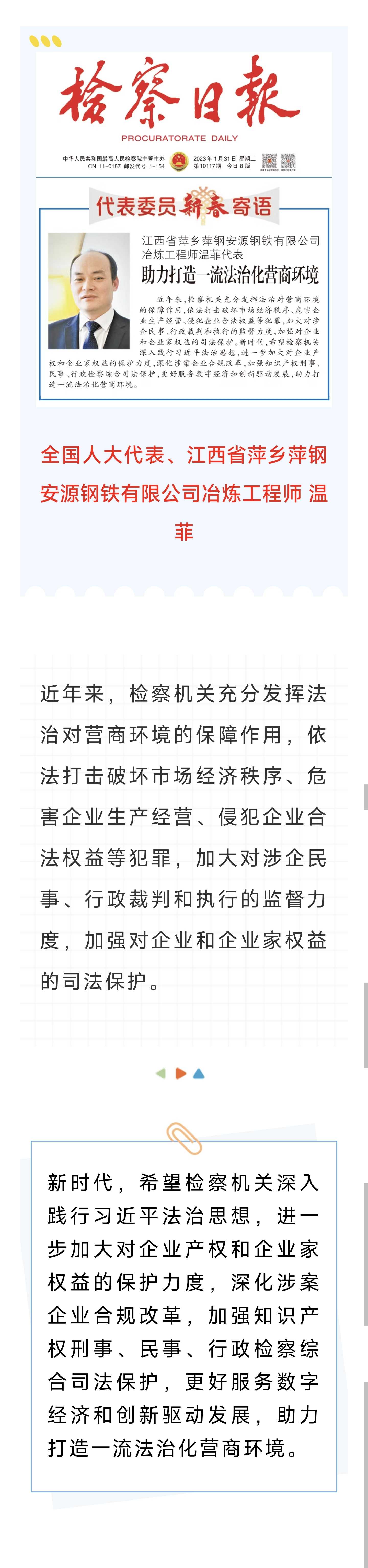 【代表委员之窗 · 检察日报头版】温菲:助力打造一流法治化营商环境