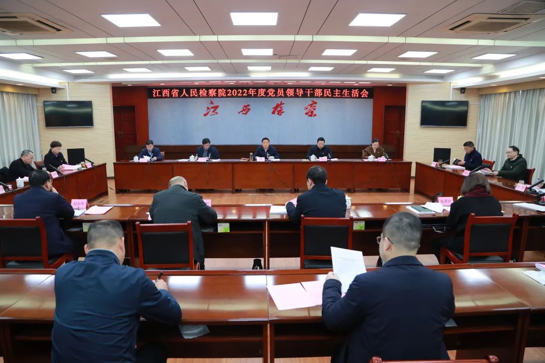 按照中央部署和省委要求,2月10日下午,江西省人民检察院召开2022年度党员领导干部民主生活会。省人民检察院党组书记、检察长丁顺生主持会议并作总结讲话。省委督导组组长、省委政法委副书记毛保国和省委督导组成员到会指导。省检察院党员领导干部参加会议。