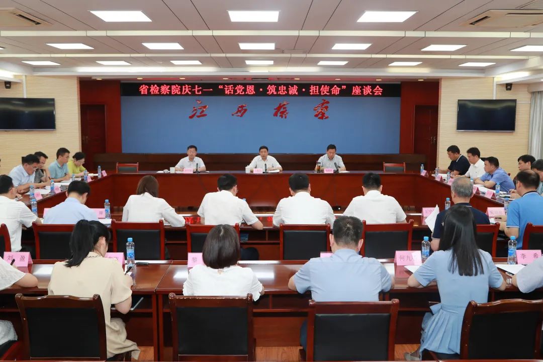 百年大党再添风华,壮阔征程再建新功。6月30日,在中国共产党诞辰102周年即将来临之际,江西省人民检察院召开“话党恩·筑忠诚·担使命”座谈会,共同庆祝党的生日,持续推进主题教育,引导机关党员干部勇担使命,在党的检察事业发展中再创佳绩。省人民检察院党组书记、检察长、院主题教育领导小组组长丁顺生出席并讲话。