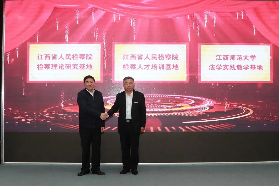 10月24日,江西省人民检察院党组书记、检察长丁顺生到江西师范大学走访调研,出席检校合作协议签约仪式,为“江西省人民检察院检察人才培训基地”“江西省人民检察院检察理论研究基地”“江西师范大学法学实践教学基地”揭牌并讲话。江西师范大学党委书记黄加文致辞,江西师范大学党委常委、纪委书记舒平贵主持签约仪式。