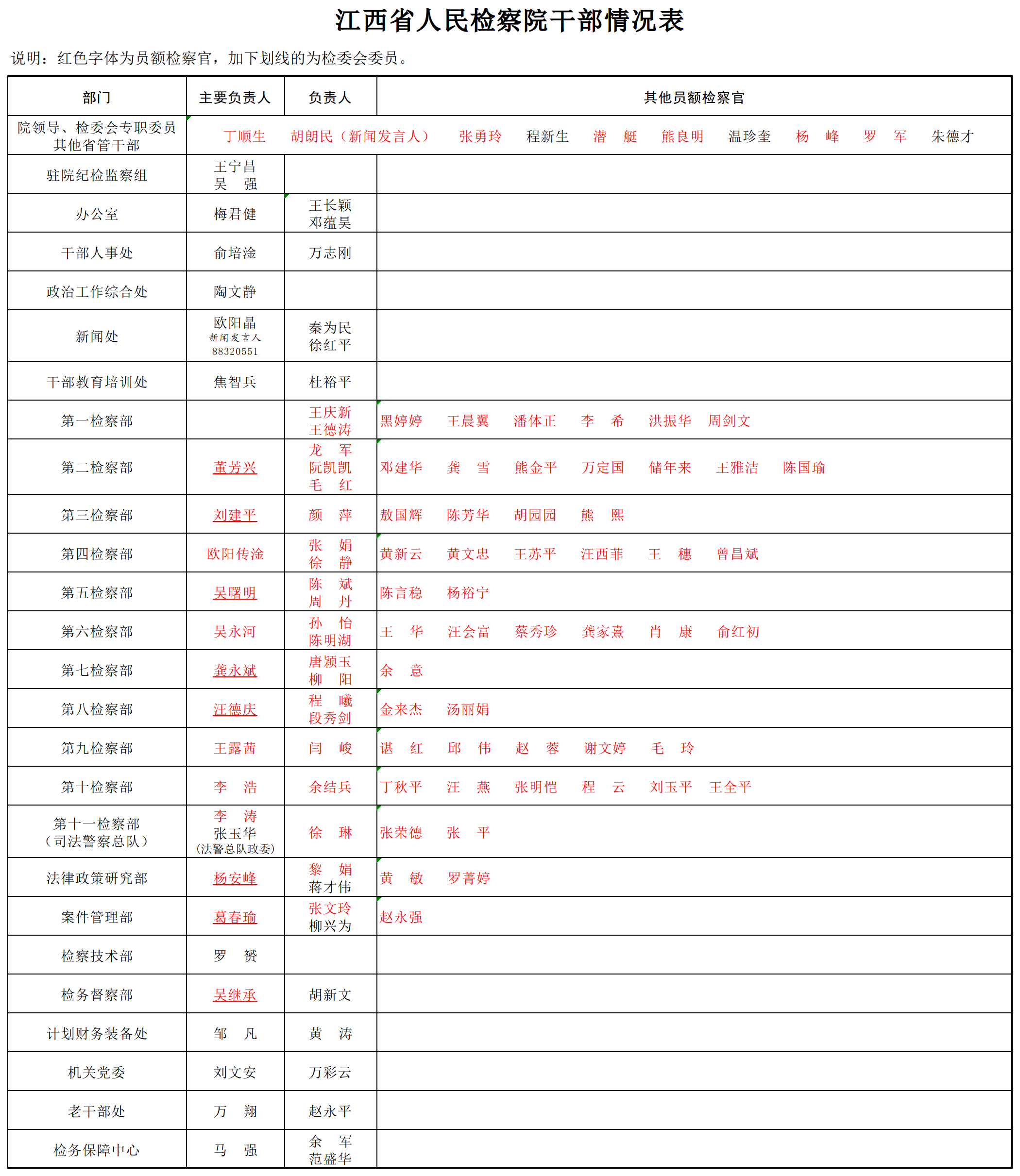 江西省人民检察院干部情况表