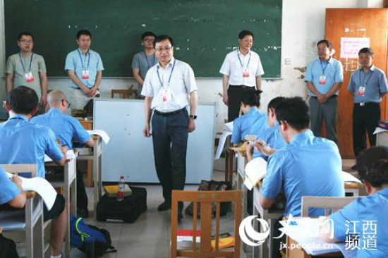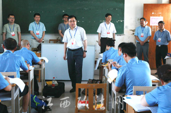 江西省检察院党组书记、检察长刘铁流在上饶考场巡考。图/姚卫东、张 璐