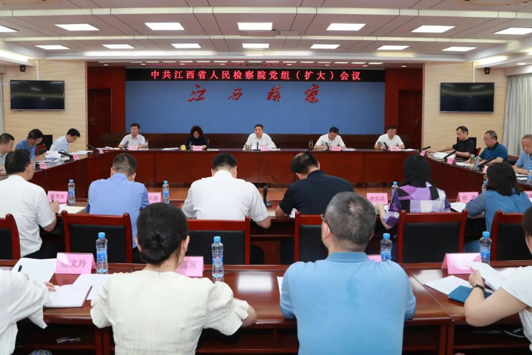 7月26日,江西省人民检察院召开党组(扩大)会议,认真学习习近平总书记对网络安全和信息化工作的重要指示、在中央财经委员会第二次会议上的重要讲话、在全国生态环境保护大会上的重要讲话、在中央全面深化改革委员会第二次会议上的重要讲话、在《求是》杂志发表的重要文章《深化党和国家机构改革 推进国家治理体系和治理能力现代化》,传达学习省委十五届四次全体(扩大)会议和省委有关会议精神,研究贯彻落实意见。省人民检察院党组书记、检察长丁顺生主持会议并讲话。